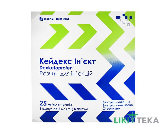 Кейдекс Ін`єкт розчин д/ін. 25 мг/мл по 2 мл №5 в амп.