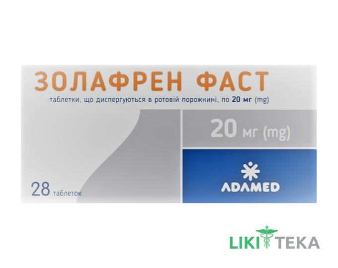 Показання Золафрен фаст таблетки, дисперг. в рот. порож. по 20 мг №28 (7х4)