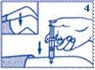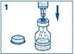 1. Зніміть пластиковий ковпачок з флакона. Зніміть зі шприца ковпачок голки. Не виймайте пластиковий шток поршня зі шприца. Введіть голку через гумову пробку у флакон, що містить ліофілізат (в межах позначеного кола), і введіть рідину зі шприца до флакона. |