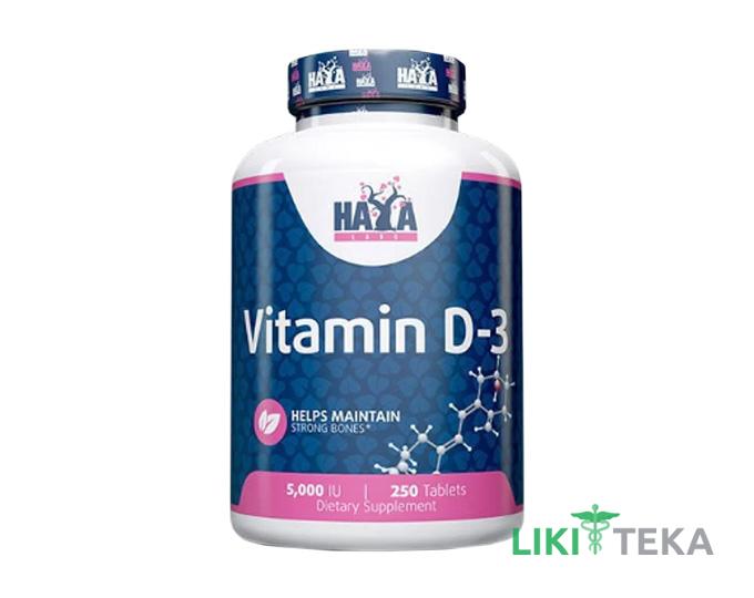 Haya Labs 100% вітамін D-3 5000 МО випускається в упаковці по 250 капсул, 5000 МО вітаміну D3 на порцію.