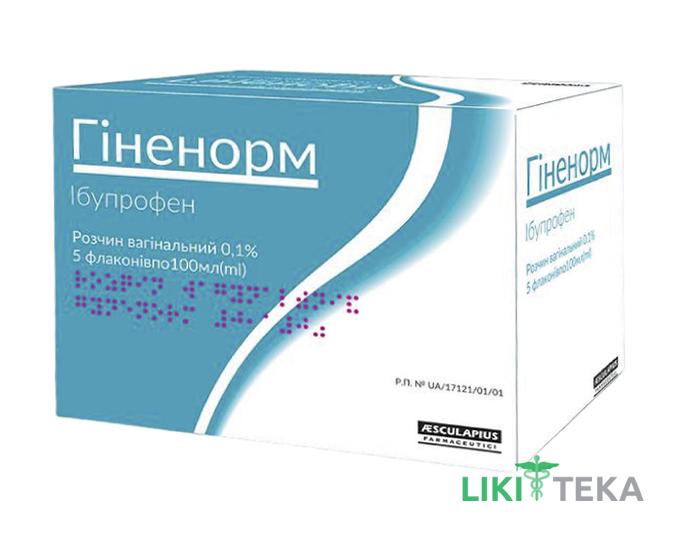 Реєстраційні дані Гіненорм розчин вагін. 0,1 % по 100 мл №5 у флак. з канюл. стер.
