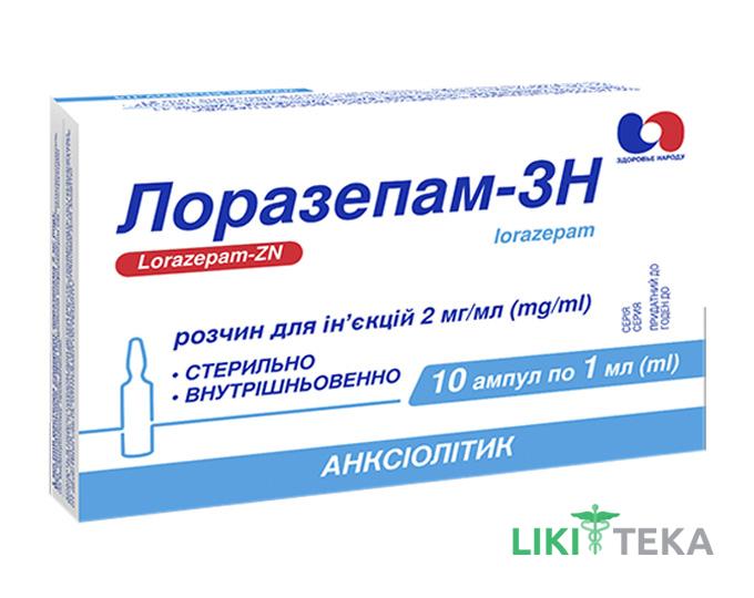 Лоразепам-ЗН розчин д/ін. 2 мг/мл по 1 мл №10 в амп.