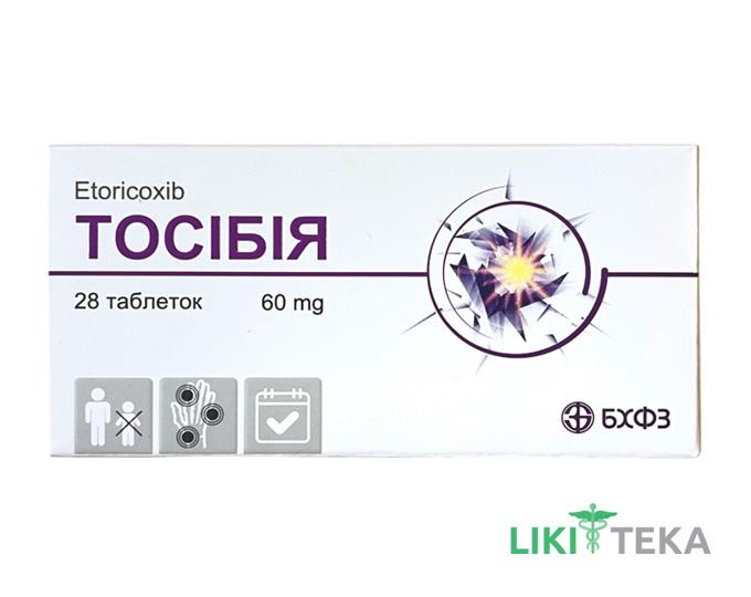 Реєстраційні дані Тосібія таблетки, в/плів. обол. 60 мг №28 (7Х4)