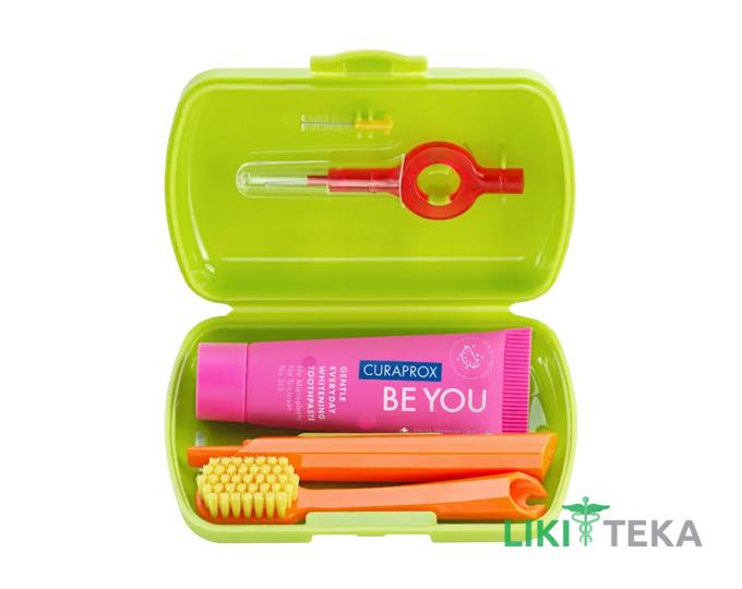 Дорожній ортодонтичний набір "Be You Ortho", зелений Curaprox Be You Green Ortho Travel Set (tbr/1pc + paste/10ml + brush/3pc + bag)