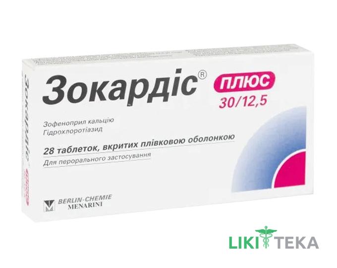 Зокардис Плюс 30/12,5 таблетки, в/плен. обол., №28 (14х2)