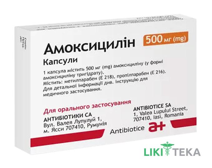 1 капсула містить 250 мг або 500 мг амоксициліну (у формі амоксициліну тригідрату);