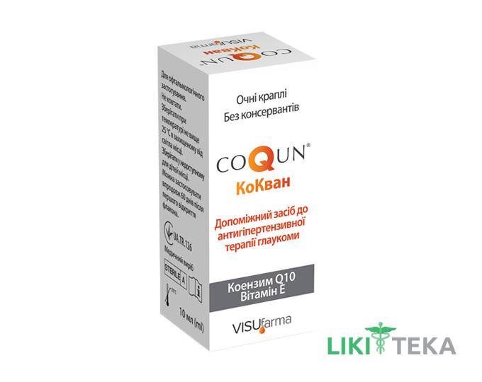 КоКван – стерильний офтальмологічний розчин, без консервантів, що містить два антиоксиданти: коензим Q10 та вітамін Е-TPGS. Які мають здатність протидіяти окислювальним пошкодженням тканин ока, що пов'язані з розвитком глаукоми.
