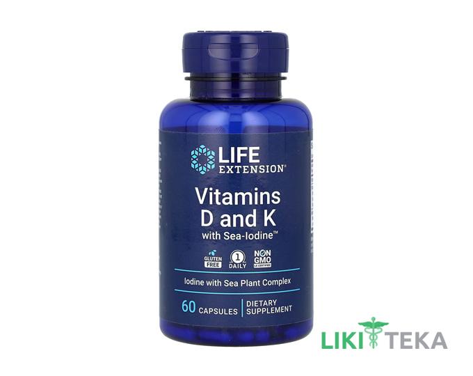 Life Extension (Лайф Экстеншн) Витамин D и К с морским йодом капсулы №60