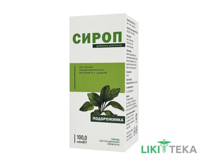 Склад на 5 мл (ml): основні речовини: екстракт листя подорожника водний — 2,7 г (g), вітамін С — 0,007 г (g); допоміжні речовини: цукор, кислота лимонна, натрію бензоат.