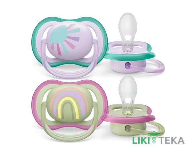 Пустышка силиконовая Авент (Avent) SCF376/12 Ultra Air 0-6 месяцев ночная для девочек 2 шт