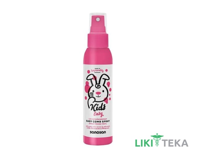 Sanosan Kids Спрей для легкого розчісування волосся для дітей від 3-х років. Діти люблять веселого зайчика Санні і ніжний аромат малини. Матусям подобається збагачена формула догляду з органічним екстрактом оливки, натуральним молочним білком та особливо поживними інгредієнтами, які надають дитячому волоссю природний блиск, роблять його шовковистим і легким для розчісування.