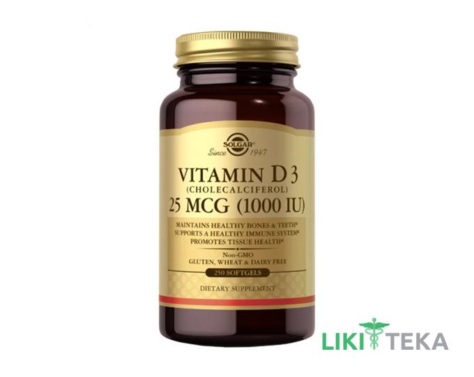 Солгар (Solgar) Витамин D3 1000 МЕ (25 мкг) капс. фл. №250