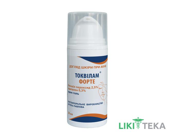Крем-гель від акне Токвілам-Форте містить перекис бензоїлу і адапален, які ефективно зменшують і контролюють бактеріальне забруднення. Крем-Гель Токвілам-Форте може зменшити кількість і тяжкість акне, сприяти швидкому загоєнню прищів.
