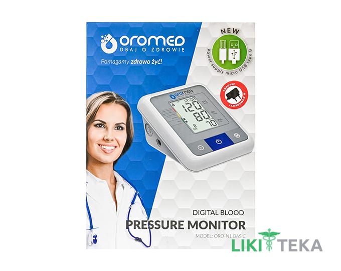 Прилад є сучасним точним і компактним пристроєм для проведення вимірювальних процедур артеріального тиску і частоти пульсу, проведений відомою польською торговою маркою OROMED. Якість даного тонометра відповідає міжнародним стандартам з виробництва медичної вимірювальної техніки. В даному тонометрі передбачені додаткові функції: пам'ять, обчислення середнього значення, індикатор аритмії, функція дати і часу, автоматичне відключення. Пристрій ORO-N1 BASIC забезпечує високу, перевірену в медичних умовах точність і максимально зручне використання. Пристрій призначений для використання вдома і в мед.закладах.